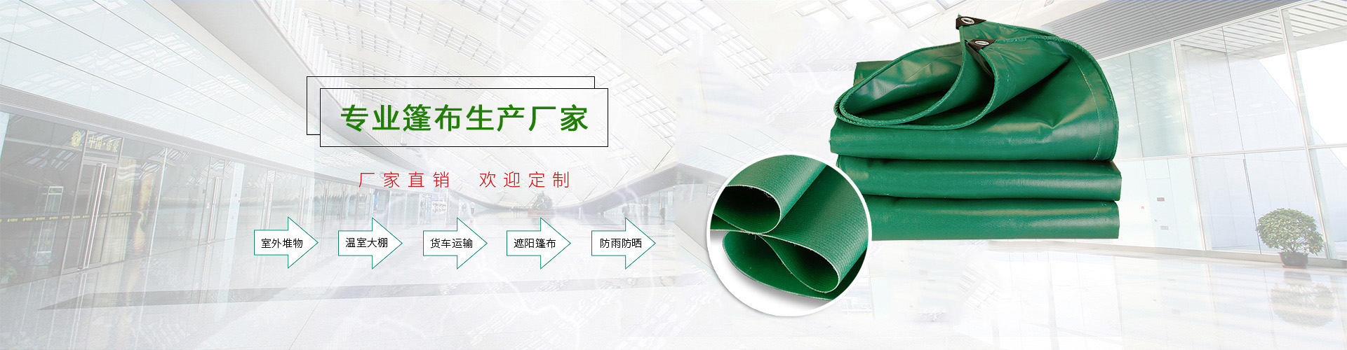 以科技投入為先導,以良好的篷布生 產(chǎn)設(shè)備,過硬的質(zhì)量為保障。